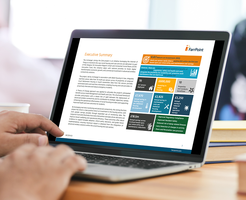 FarrPoint’s study of Archangel’s ‘Joining the Dots’ IoT project found that smart sensors can improve safety, lower costs, and pay for themselves within a year in Scotland’s retirement housing.